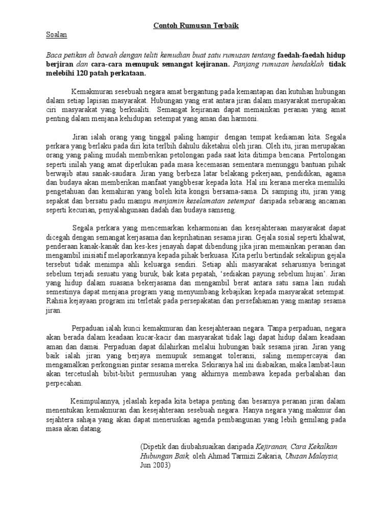 Contoh Jawapan Rumusan Yang Baik
